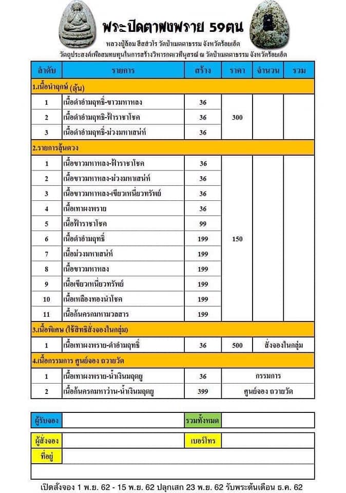 รายการที่2 เนื้อลุ้นดวง ราคาจอง 150 บาท มียอด 50 องค์