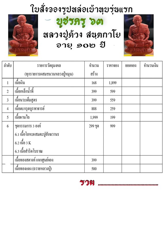 *** มีรายการเปิดจอง ดังนี้ครับ