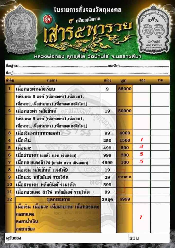 เปิดจอง เหรียญนั่งพานเสาร์ 5 พารวย หลวงพ่อทอง สุทธฺสีโล วัดบ้านไร่