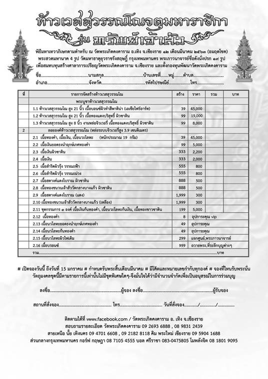 รายการ 2.2.เนื้อเงินนำฤกษ์เกศทองคำ ราคาจอง 5,000.-บาท มียอด= สอบถาม