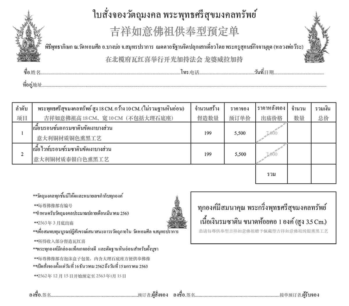 🔅รายการที่ 1 เนื้อบรอนซ์นอกรมซาตินขัดเงาบางส่วน จัดสร้าง 199 องค์ สั่งจอง 5,500 บาท