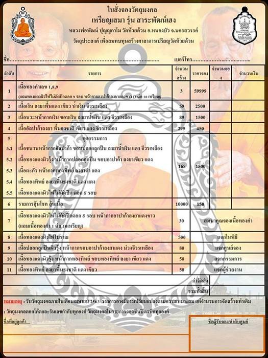 รายการ 3.เนื้อนวะหน้ากากเงิน ขอบเงิน ลงยาน้ำเงิน-แดง จีวรเหลือง ราคาจอง 1,500.-บาท มียอด= 5