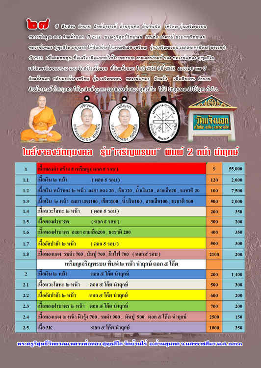 หัวข้อกระทู้ : เปิดจอง เหรียญ รุ่นเจิญพรบน พารวย วัดแจ้งนอก หลวงพ่อทอง สุทฺธสีโล วัดบ้านไร่ นครราชสีมา ปี2563*1*
