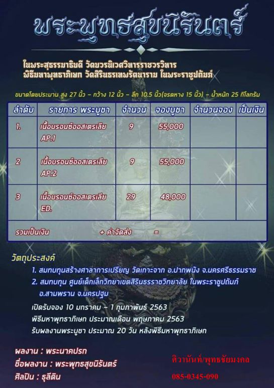 เปิดจองพระพุทธสุขนิรันดร์ ในพระสุธรรมาธิบดี วัดบวรนิเวศวิหารราชวรวิหาร มหาพุทธาภิเษก วัดสิรินธรเทพรัตนาราม