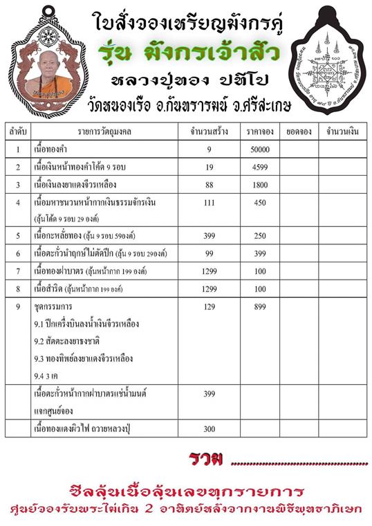 รายการ 9.ชุดกรรมการ (รับพระ 4 เหรียญ) ราคาจอง 899.-บาท มียอด= 5