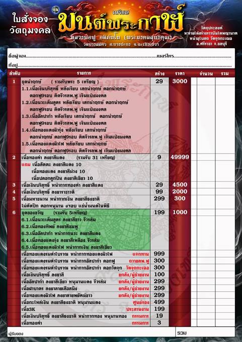 รายการ 1.ชุดนำฤกษ์ (รับพระ 5 เหรียญ) ราคาจอง 3,000.-บาท มียอด= สอบถาม