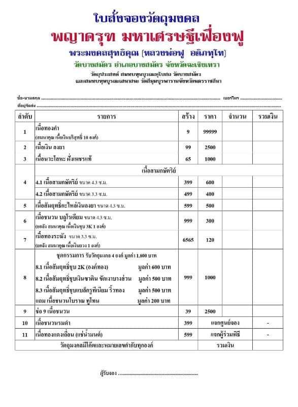 ราคาตามใบจอง ค่าส่ง 60 บาท