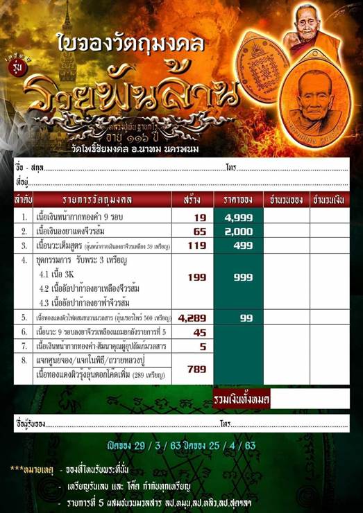 รายการ 2.เนื้อเงินลงยาแดง จีวรส้ม ราคาจอง 2,000.-บาท มียอด= 2
