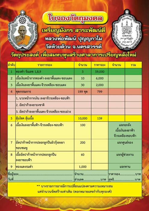 *** มีรายการเปิดจอง ดังนี้ครับ
