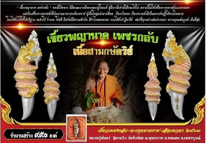 เขี้ยวพญานาค ด้วยอิทธิฤทธิ์ของ เขี้ยวพญานาคที่เป็นของกายสิทธิ์ กว่าจะได้ชนวน มวลสาร ที่ได้มา ไม่ใช่ของธรรมดา และไม่มีใครจะได้ง่ายๆ เขี้ยว เกาะเกี่ยวสิ่งใด นำทุกอย่างมาให้ เป็นเงินเป็นทอง มั่งมีเงิน มั่งมีทรัพย์ ร่ำรวย ยิ่งพวกทำมาค้าขาย เสี่ยงโชค แสวงลาภ จะมีแต่เพิ่ม มีกำไร มากมายมหาศาล เงินเข้าทรัพย์เข้ามากไม่รู้เนื้อรู้ตัว