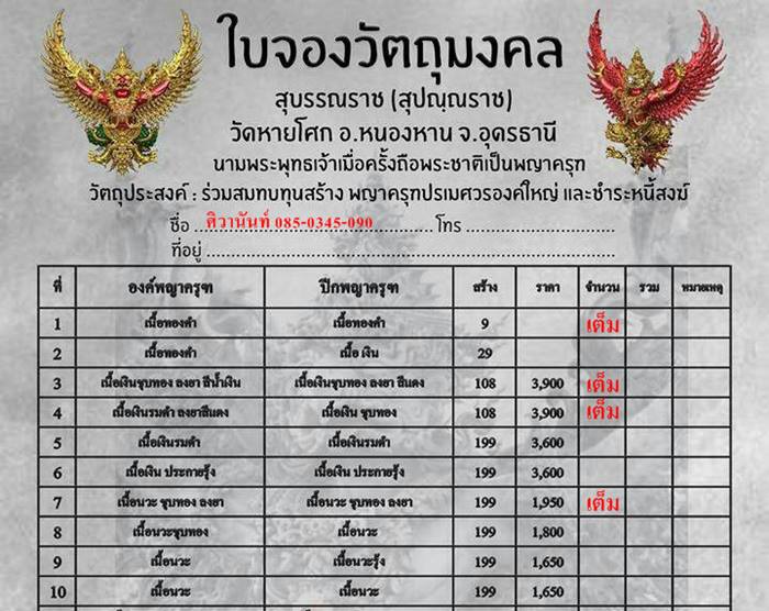 วัตถุประสงค์ ร่วมสมทบทุนสร้างพญาครุฑปรเมศวรองค์ใหญ่และชำระหนี้สงฆ์