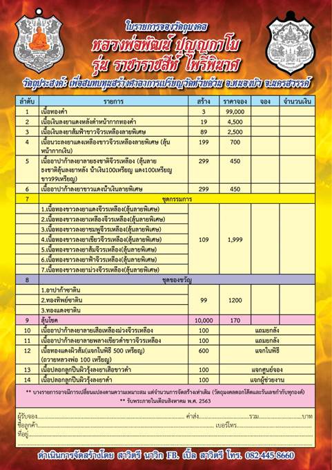 รายการ 4.เนื้อนวะลงยาแดง-เหลือง-ขาว จีวรเหลืองลายพิเศษ ราคาจอง 700.-บาท มียอด= 4