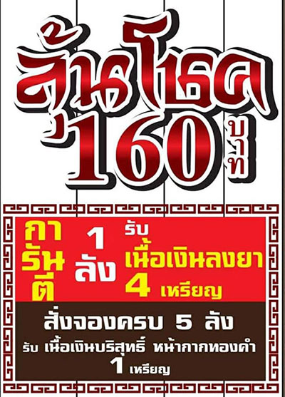 ลุ้นโชค เหรียญล่ะ 160 บาท / การันตี 1 ลัง รับเนื้อเงิน ลงยา 4 เหรียญ (1 ลัง 100 เหรียญ)