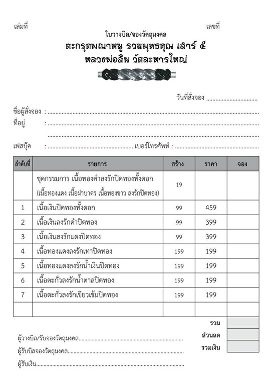รายการ 4.เนื้อทองแดงลงรักเทาปิดทอง ราคาจอง 199.-บาท มียอด= 10