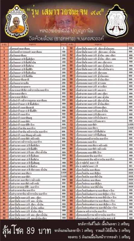 เปิดจองเสมารวยชนะจน 99 หลวงปู่พัฒน์ วัดห้วยด้วน เนื้อลุ้นราคาจองเหรียญละ89บาท