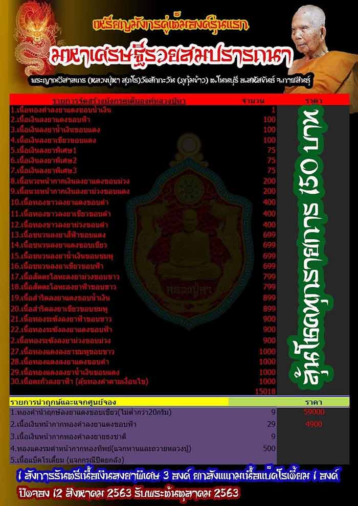 เหรียญมังกรคู่เต็มองค์รุ่นแรกมหาเศรษฐีรวยสมปรารถนา หลวงปู่หา สุภโร วัดสักกะวัน กาฬสินธุ์ ลู้นโชค 150 บาท ยกลังประกันเนื้อเงินลงยา 3 เหรียญในลัง แถมเนื้อแบล็คโรเดียม 1 เหรียญ รวมรับพระ 101 เหรียญครับ