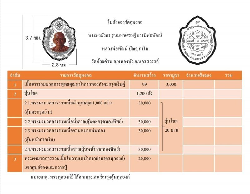 รายการ 1.เนื้อขาวรวมมวลสารพุทธคุณ หน้ากากทองคำ ตะกรุดเงินคู่ ราคาจอง 3,000.-บาท มียอด= สอบถาม