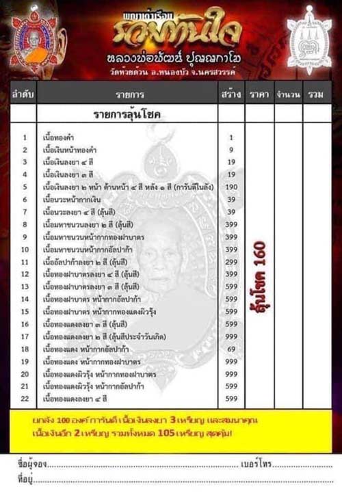 รายการ. ลุ้นเนื้อ ราคาจอง 160.-บาท มียอด= 100