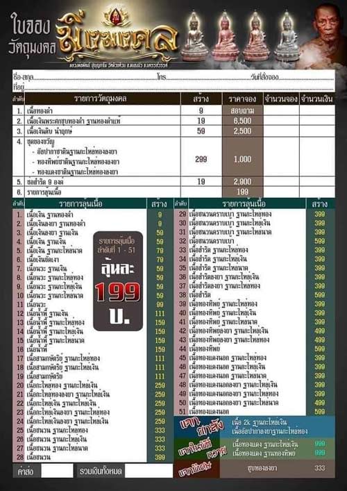 รายการ 6 = ลุ้นโชค มียอดราคาจอง= 52 องค์ๆละ 199 ครับ
