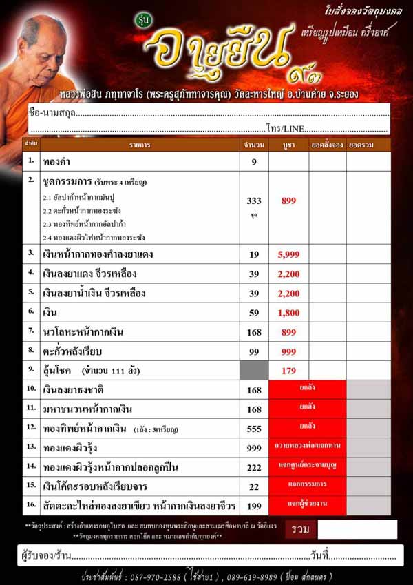 รายการ 2.ชุดกรรมการ (รับพระ 4 เหรียญ) ราคาจอง 899.-บาท มียอด= 18