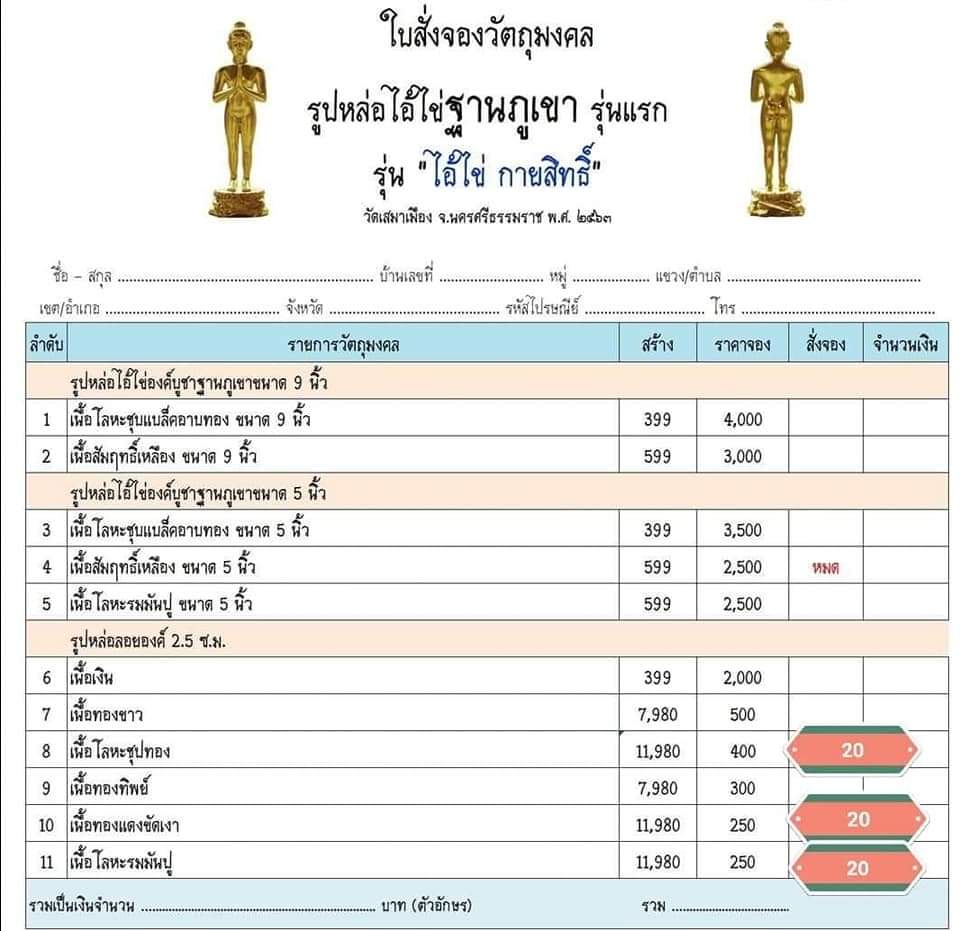 รายการที่4สัมฤทธิ์เหลือง5นิ้ว1องค์2500บาท