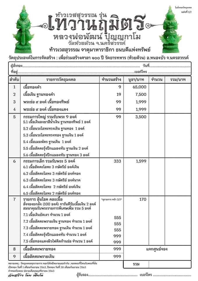 หัวข้อกระทู้ : เปิดจองท้าวเวสสุวรรณ"เทวานฤมิตร"หลวงพ่อพัฒน์ วัดห้วยด้วน ลุ้นเนื้อเเค่170บาท