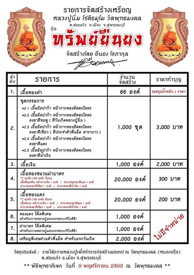 # เนื้อทองฝาบาตร ราคาจอง 300 บาท มียอด 100 องค์