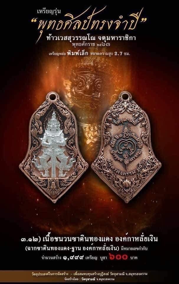 เหรียญหล่อพุทธศิลป์ ทรงจำปี ท้าวเวสสุวรรณโณ หลวงพ่ออิฏฐ์ ภทฺทจาโร วัดจุฬามณี