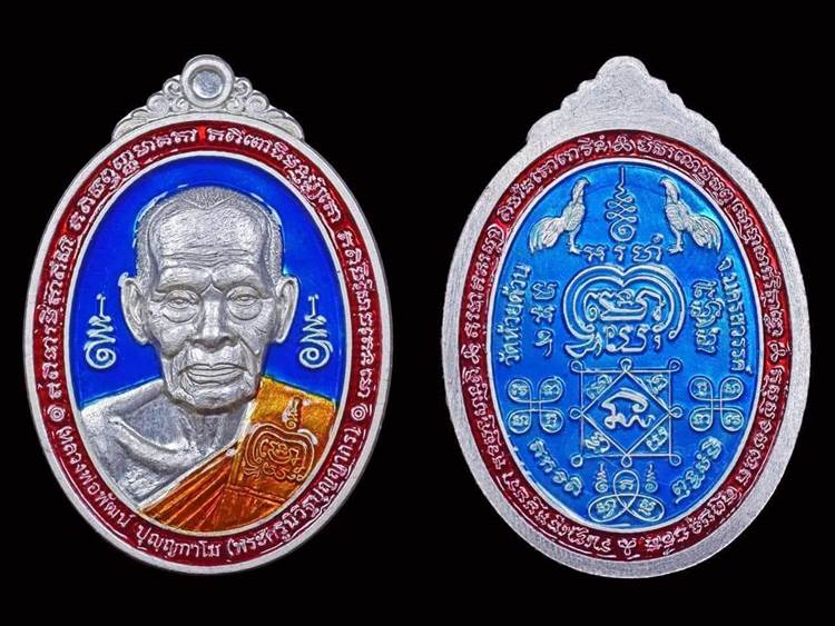 -เนื้อเงินลงยา 3 สี พื้นฟ้า ขอบแดง จีวรเหลือง จำนวน 1 เหรียญ