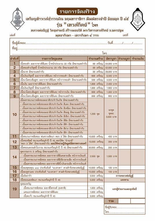 รายการ 12. เนื้อทองทิพย์ ชนวนเหรียญจำปี ปี 45 ตอกโค๊ตนำฤกษ์ ตอก 3 โค๊ต ราคาจอง 300.-บาท มียอด= 50