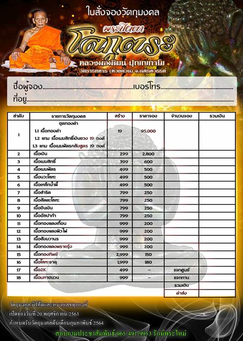 รายการ 7.เนื้อสำริด ราคาจอง 250.-บาท มียอด = 20