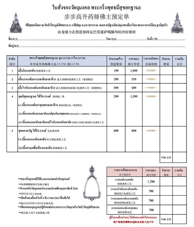 รายการ 2.เนื้อบรอนซ์นอกรมซาติน ลงยาจีวร ราคาจอง 559.-บาท มียอด= 20