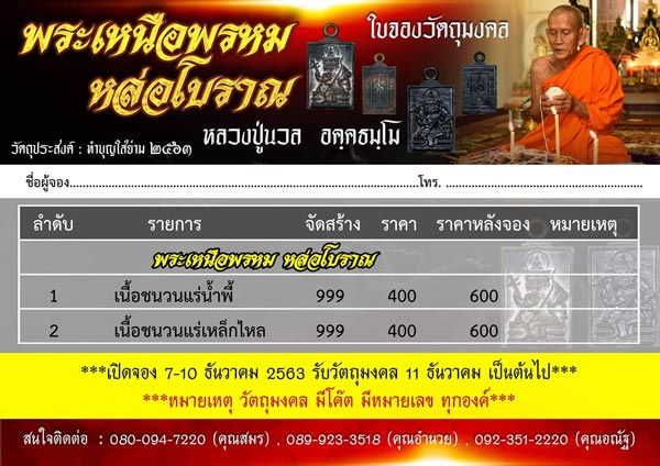 เปิดจอง พระเหนือพรหม หล่อโบราณ หลวงปู่นวล อคคธมโม