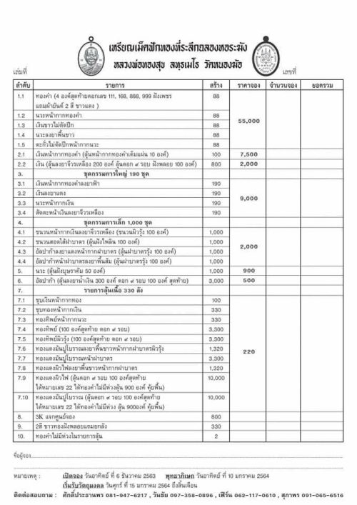 รายการที่ 2.2 เนื้อเงิน (ลุ้นลงยาจีวรเหลือง 200 องค์ ตอกโค๊ต 9 รอบ ฝังพลอย 100 องค์)