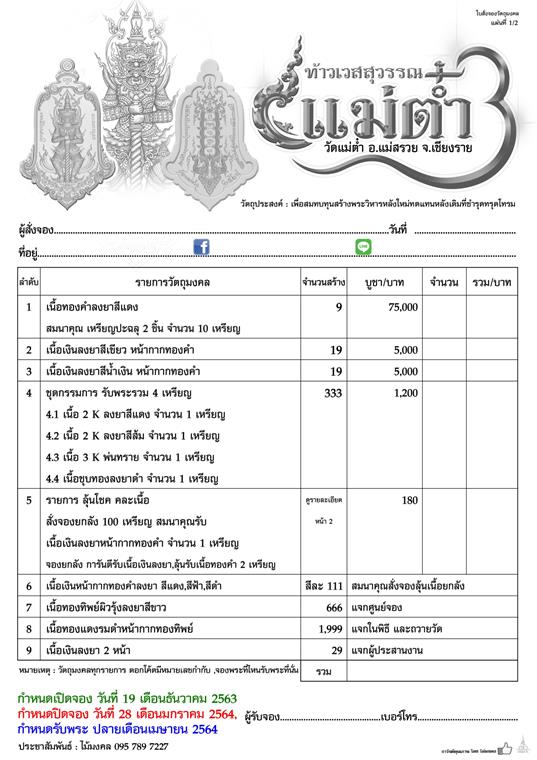 *** กำหนดรับพระปลายเดือน เมษายน 64 เป็นต้นไป