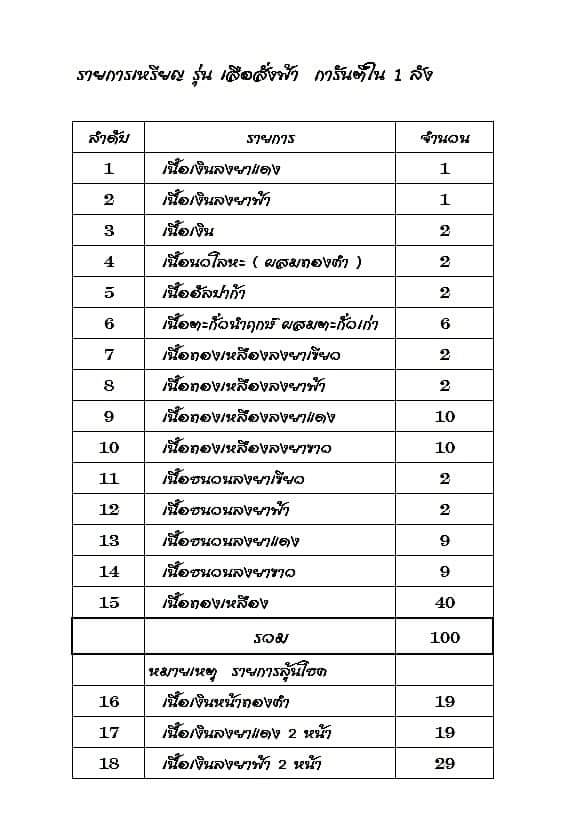 บูชาเหรียญละ 250 บาท ลุ้นเนื้อและเลขเอง ซีนปิดอย่างดี ใน 1 ลังจะมีเนื้อหลัก 60 องค์และเนื้อทองเหลืองอีก 40 องค์ คละกันไป % การได้เนื้อหลักมีมาก จะจองแบบยกลังก็ได้นะครับ