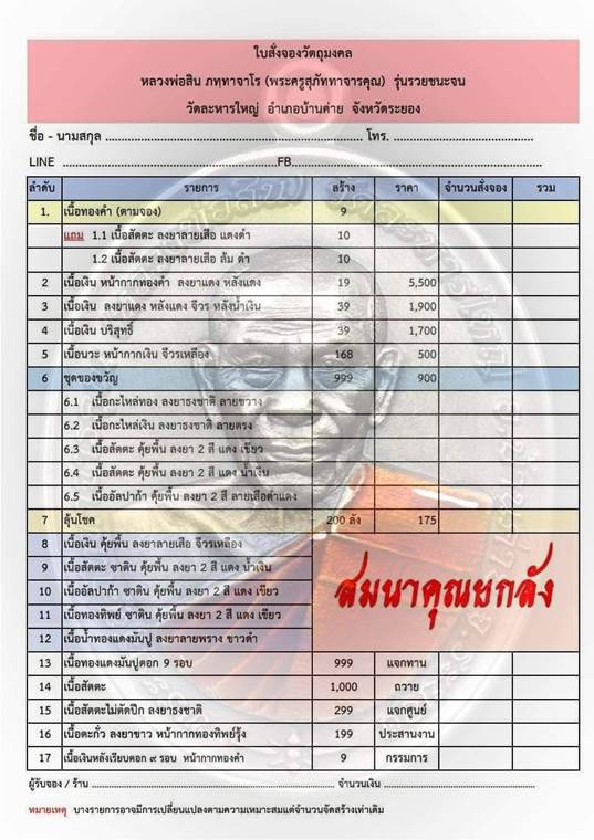 รายการ 6.ชุดของขวัญ (รับพระ 5 เหรียญ) ราคาจอง 900-บาท มียอด= 20