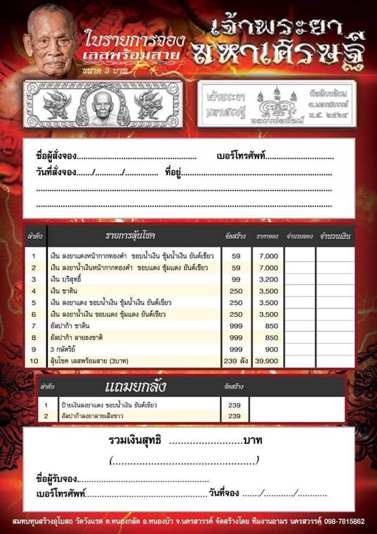 *** เปิดจอง// เลสพร้อมสาย (หนัก 3 บาท) รุ่น เจ้าพระยามหาเศรษฐี หลวงพ่อพัฒน์ วัดห้วยด้วน จ.นครสวรรค์