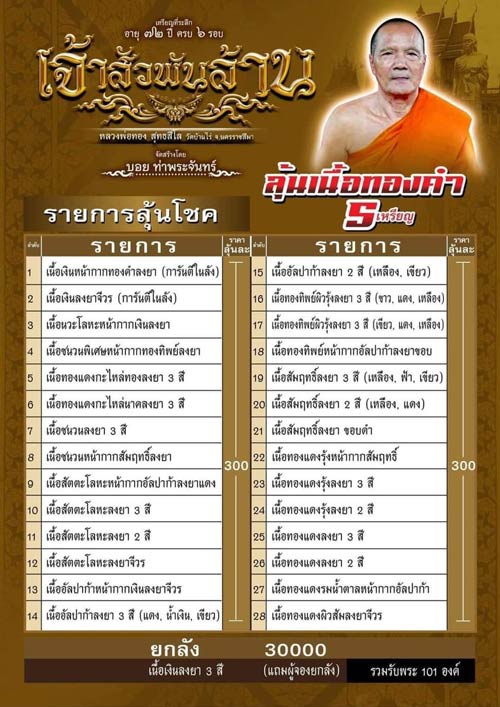 เปิดแบ่งยอดจอง เจ้าสัวพันล้าน หลวงพ่อทอง วัดบ้านไร่ จัดสร้างโดย บอย ท่าพระจันทร์