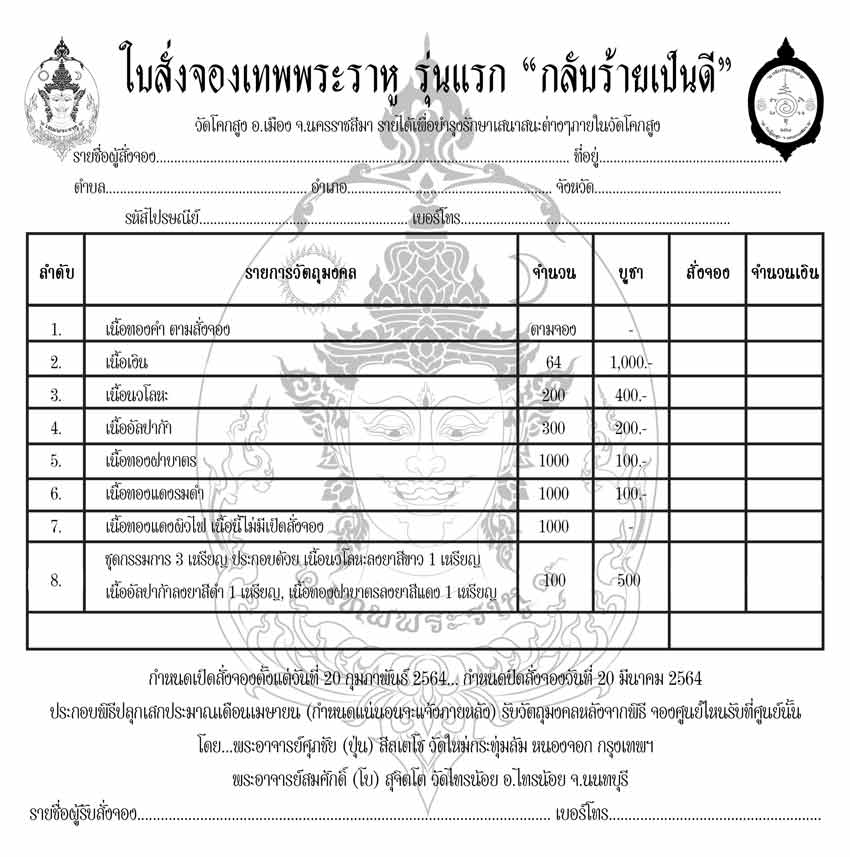 รับวัตถุมงคล วันที่ 30 เมษา 64 เป็นต้นไป