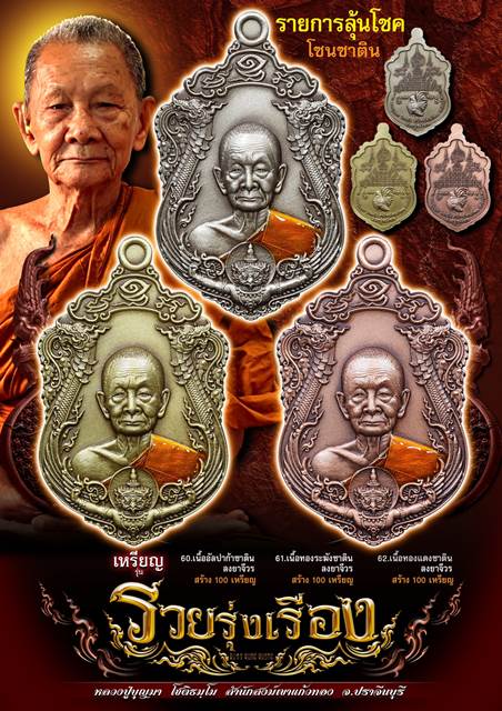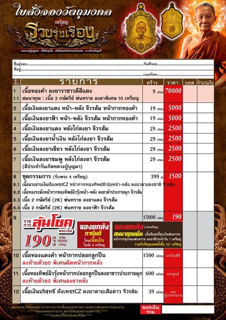 รายการ 1.เนื้อทองคำ ลงยาราชาวดีสีแดง +(เหรียญสมนาคุณ 10 เหรียญ) ราคาจอง 70,000.-บาท มียอด=สอบถาม