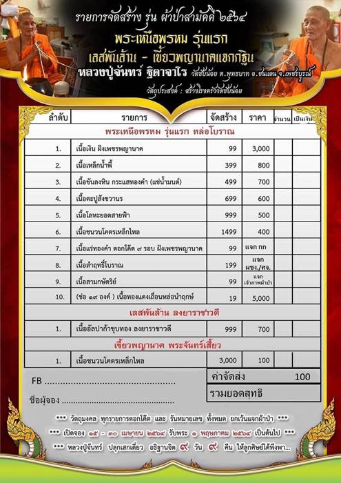 3.เนื้อขันลงหิน กระแสทองคำ (แช่น้ำมนต์) สร้าง 499 เหรียญ ราคาเหรียญละ 700 บ. มียอด 5 เหรียญ