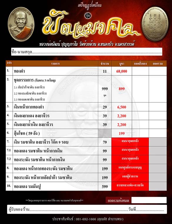 รายการ 4.เนื้อเงินลงยาแดง ลงยาจีวร ราคาจอง 2,200.-บาท มียอด= 2