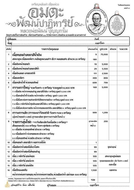 - รก.ที่ 6 เนื้อเหล็กน้ำพี้ ห่วงทองทิพย์ ราคาเหรียญละ 900 บาท (มียอด 4 เหรียญ)