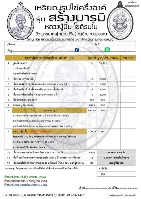 *** เปิดจอง// เหรียญรุ่น สร้างบารมี หลวงปู่นิ่ม โชติธมฺโม วัดพุทธมงคล(หนองปรือ) อ.เมือง จ.สุพรรณบุรี