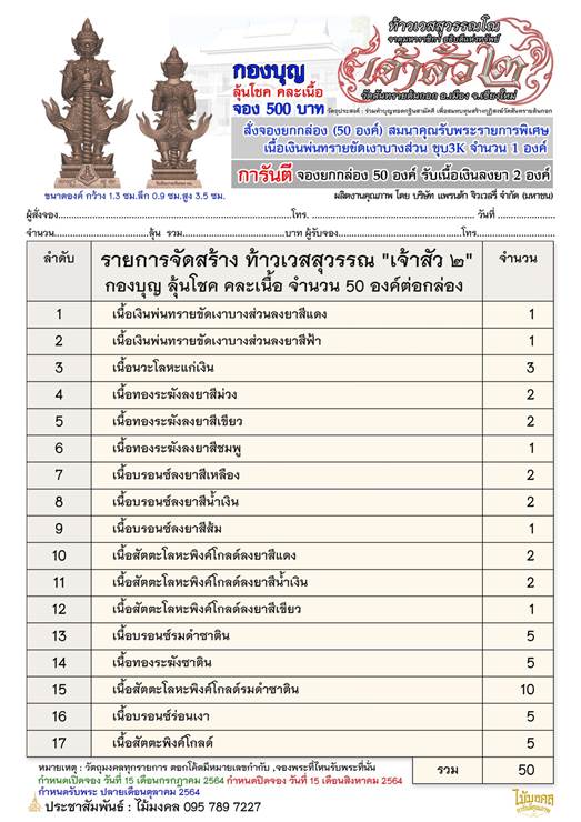 รายการ .กองบุญลุ้นโชค คละเนื้อ ราคาจอง 500.-บาท มียอด= 50