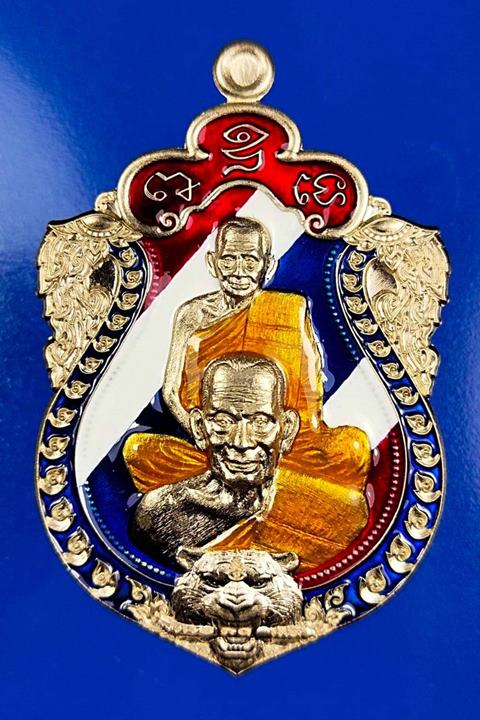 รายการ 4.เนื้ออัลปาก้าลงยาธงชาติลายเฉียง บนแดง/ขอบน้ำเงิน/ลงยาจีวร/หลังลงยาแดง ราคาจอง 350.-บาท มียอด= 15