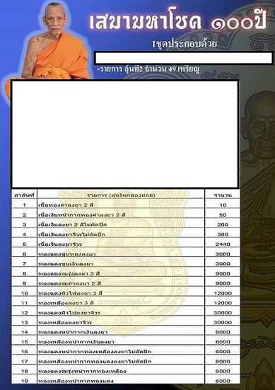 เปิดจอง เหรียญเสมามหาโชค 100 ปี หลวงพ่อพัฒน์ ปุญญกาโม วัดห้วยด้วน รายการลุ้น โซน 2 ลุ้น 19 รายการ มีตั้งแต่เนื้อทองคำ เนื้อเงิน งานลงยา งานหน้ากาก ตามใบรายการครับ