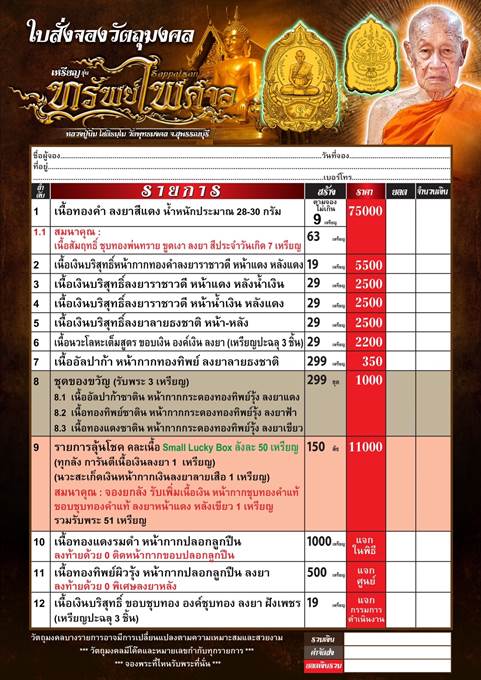 *** สามารถแจ้งรายและจำนวนไว้ได้เลยนะครับ