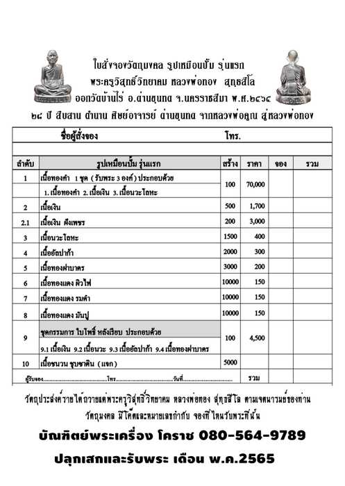 เปิดจองรูปหล่อปั้ม รุ่นแรก หลวงพ่อทอง สุทฺธสีโล วัดบ้านไร่